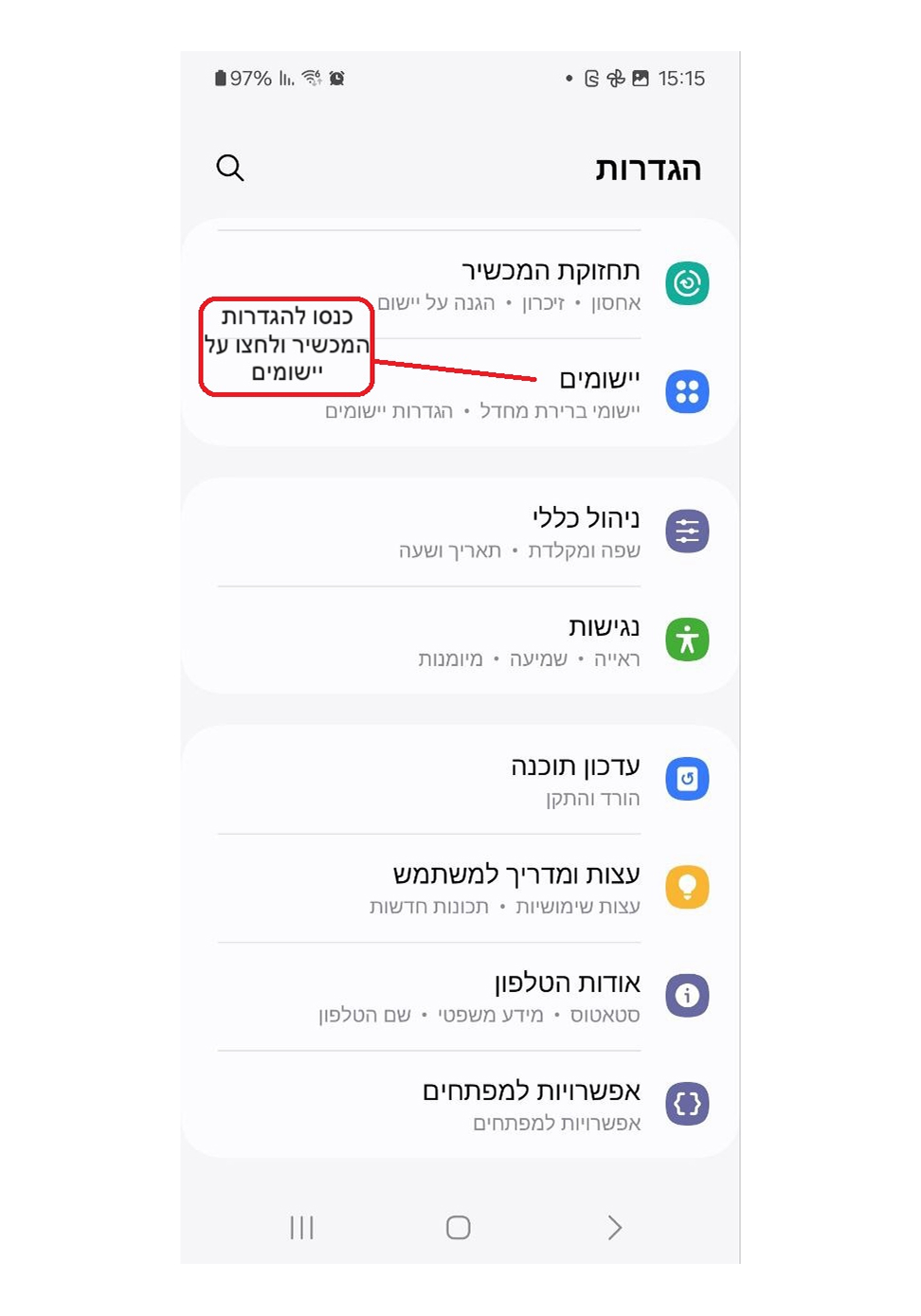 כנס להגדרות המכשיר ולחץ על יישומים