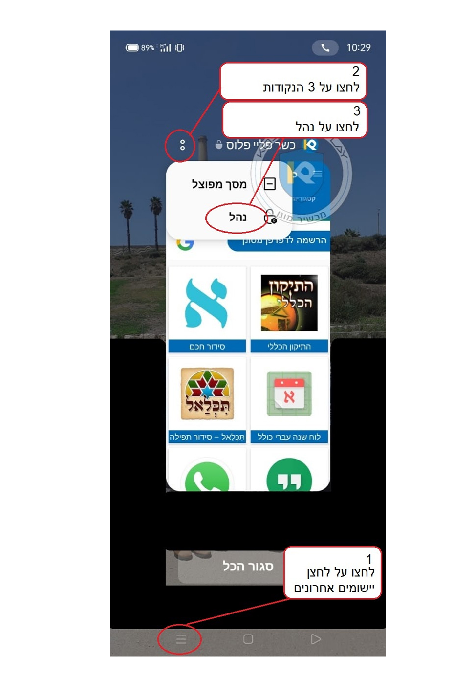 לחץ על 3 נקודות ולאחר מכן על נהל