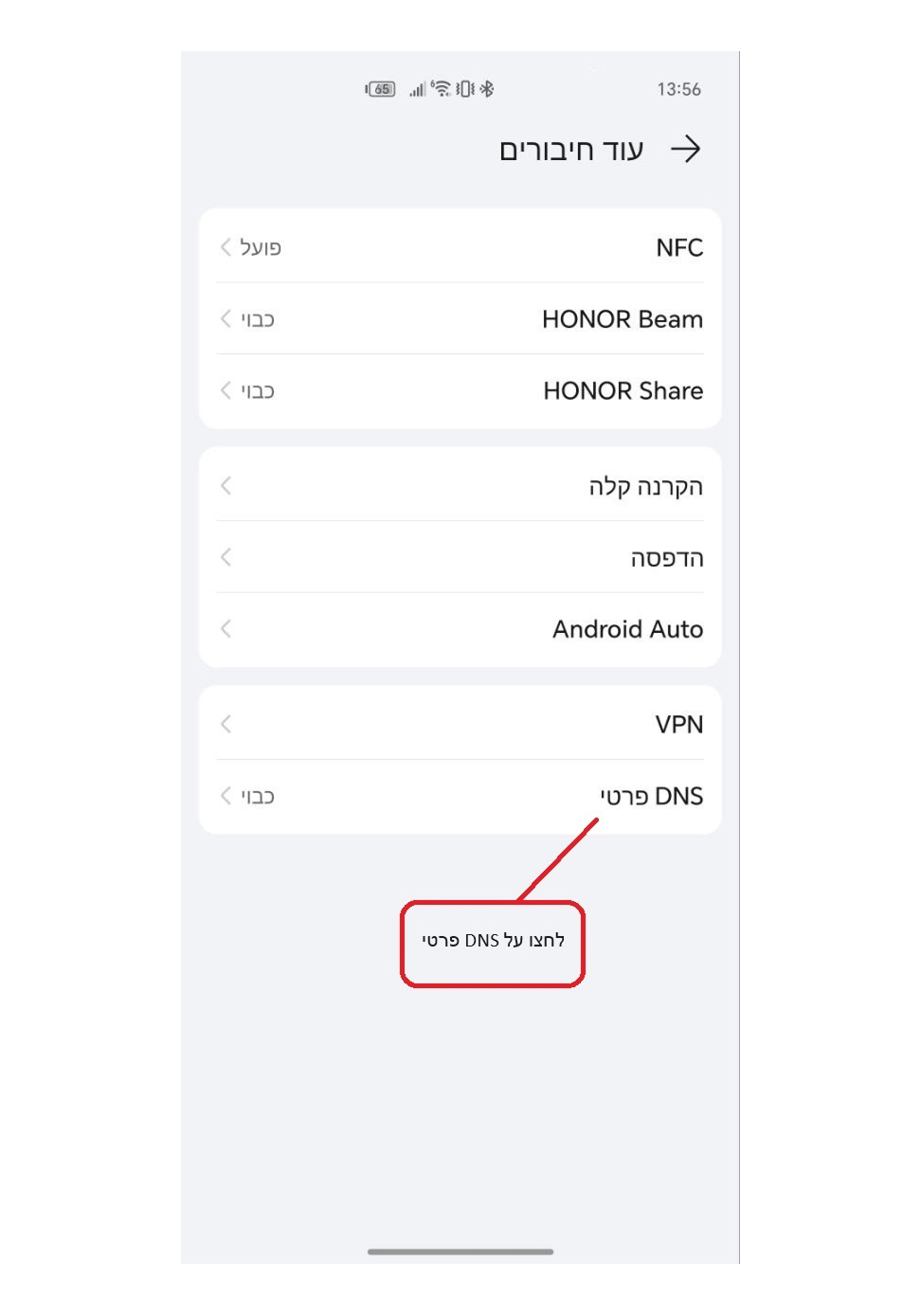 רשום בחיפוש dns ולחץ על DNS פרטי